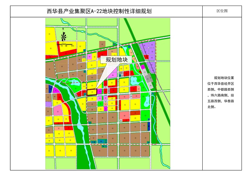 为提高规划的科学性和民主性,建立公众参与机制,根据《中华人民共和国城乡规划法》、《城市规划编制办法》和《河南省实施<中华人民共和国城乡规划法>办法》有关规定,规划报送审批前应进行公示,充分征求社会公众的意见,修改完善后报上级部门审批。现对《西华县产业集聚区A-22地块控制性详细规划》进行公示。欢迎社会各界人士积极参与,提出宝贵意见和建议。