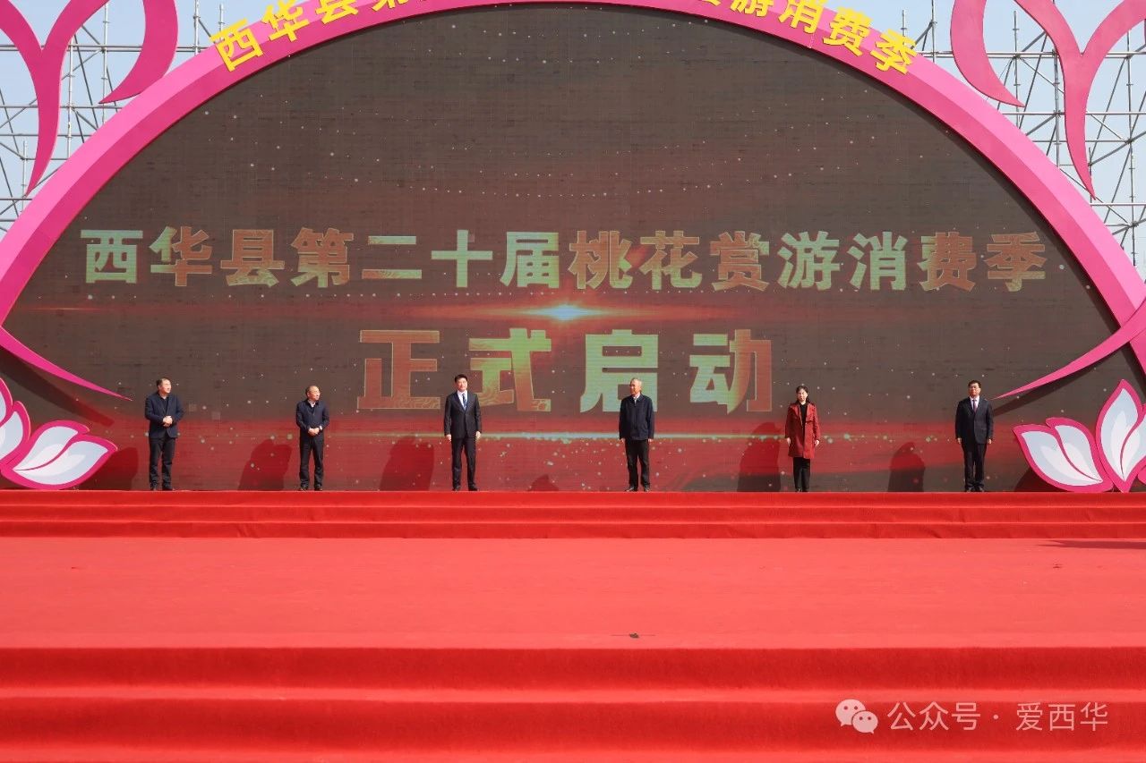 桃花初绽三月天,春色尽染颍河畔。3月28日上午,西华县第二十届桃花赏游消费季活动在西华桃花源生态风景区开幕。市委常委、市委宣传部部长王少青,市人大常委会副主任、西华县委书记田林,市政府副市长刘颖,西华县委副书记、县长马昭才等领导,以及省内外各界嘉宾和西华县部分干部群众参加开幕式。