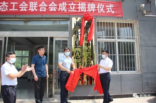 会后,王心坎与市总工会四级调研员杨勇一同为西华县新业态工会联合会揭牌。