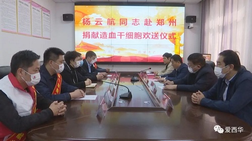 10月9日上午,西华县举行杨云航同志赴郑州捐献造血干细胞欢送会。县委副书记刘贡献、县政府副县长张翠霞出席欢送会。
