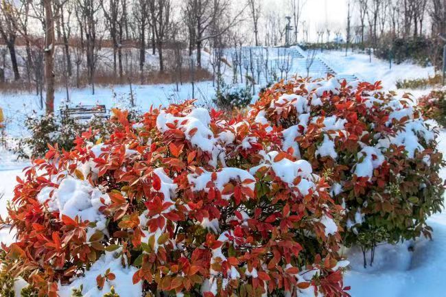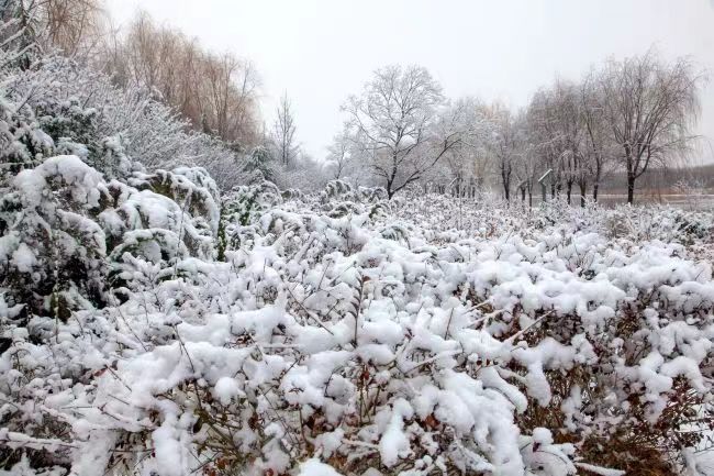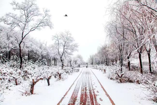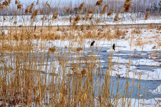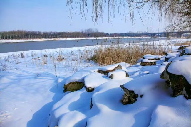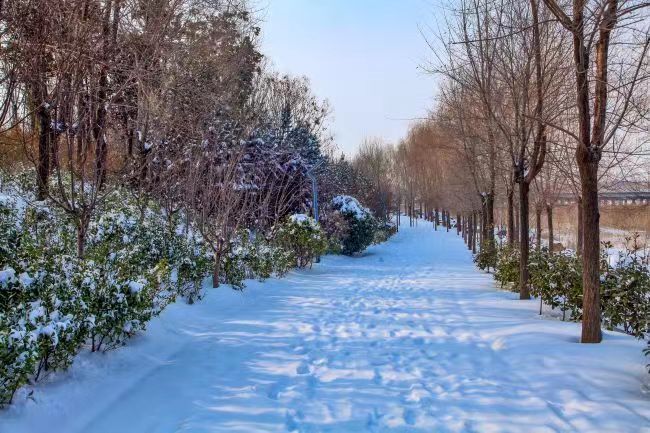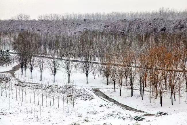 2024年2月23日,连续几场大雪过后,河南省周口市西华县贾鲁河湿地公园被皑皑白雪覆盖,如诗如画。图为自然之美。肖海清 摄