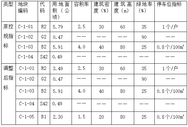 (5)调整前后用地控制指标对比如下: