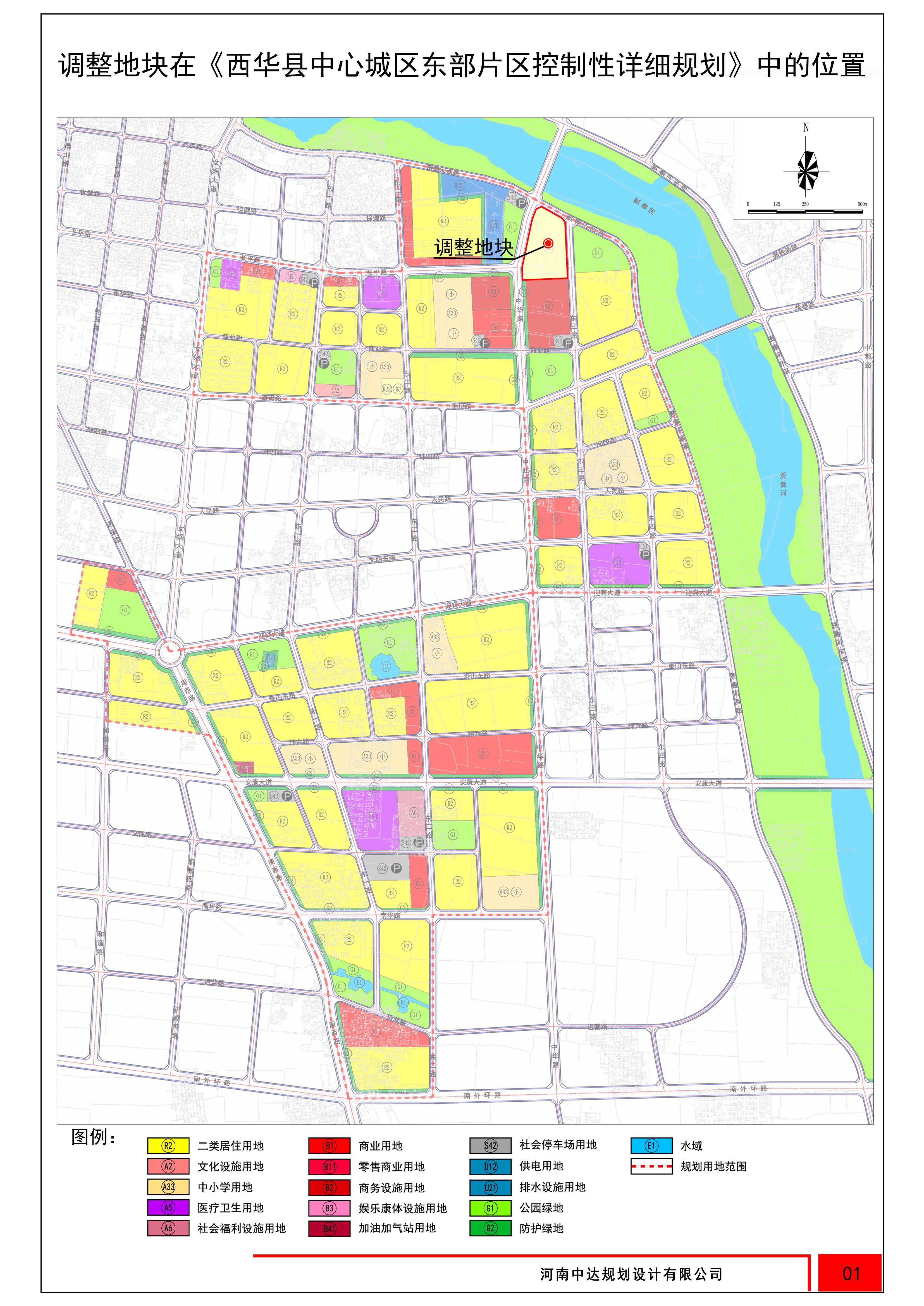 (1)地块位置:调整地块位于西华县中心城区东部片区,规划范围控制在贾鲁河西路南侧、东三路西侧、商业路北侧;属于《西华县中心城区东部片区控制性详细规划》的一部分,街坊编号:C-1,地块编码:C-1-01、C-1-02、C-1-04。