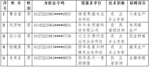 西华县农业农村局 2020年特聘农技员遴选结果公示