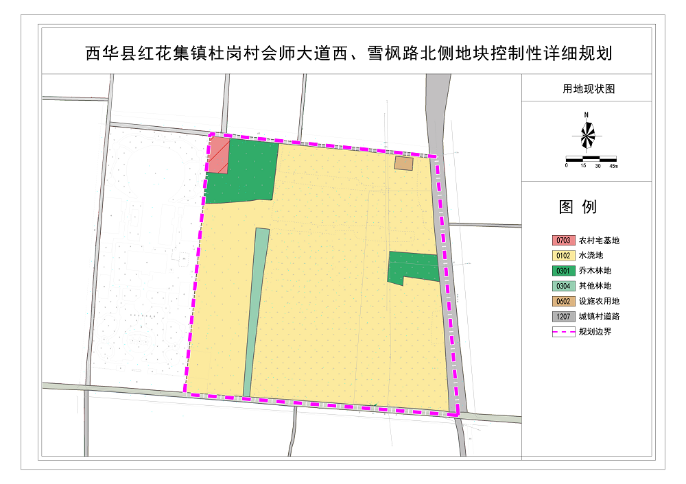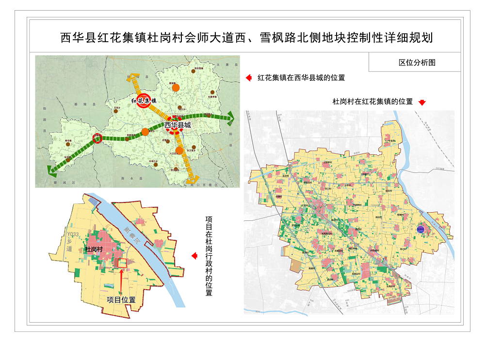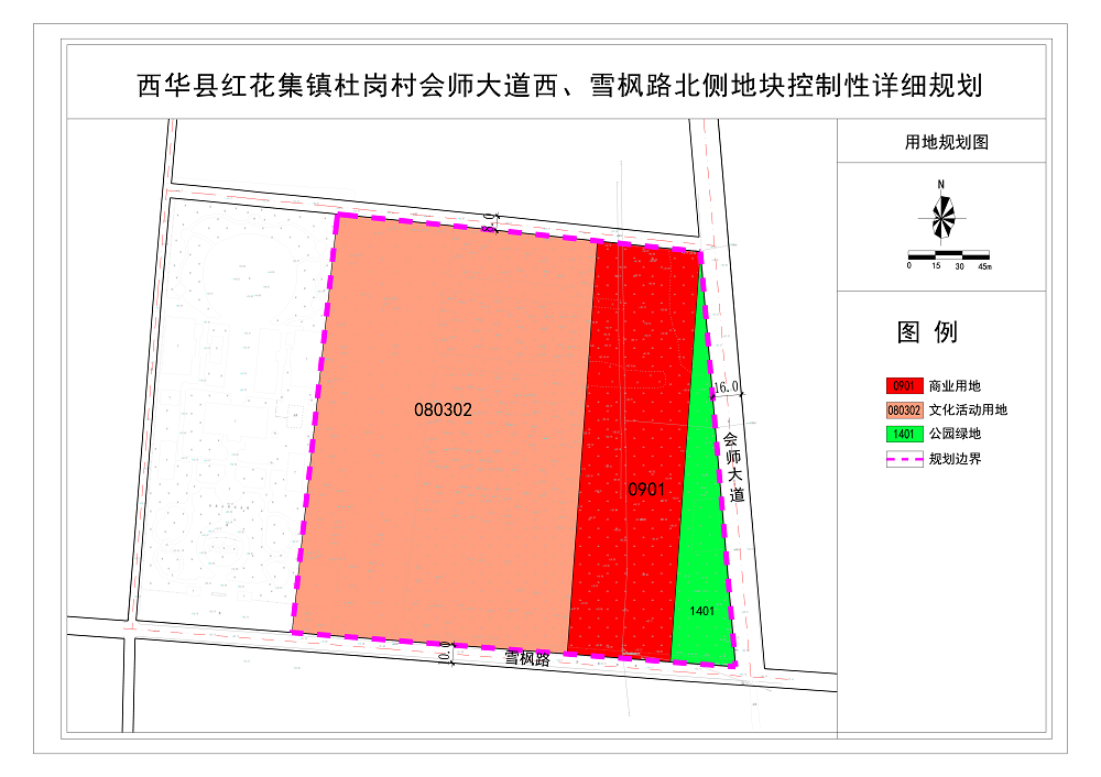 西华县红花集镇杜岗村会师大道西、雪枫路北侧地块 控制性详细规划公示