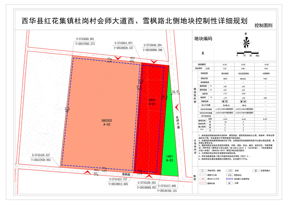 本次规划将规划地块编号为A-01、A-02、A-03。