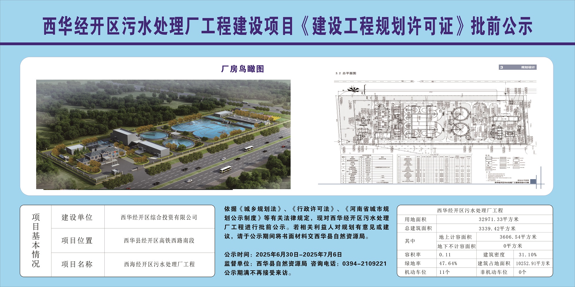 西华经开区污水处理厂工程建设项目《建设工程规划许可证》批前公示