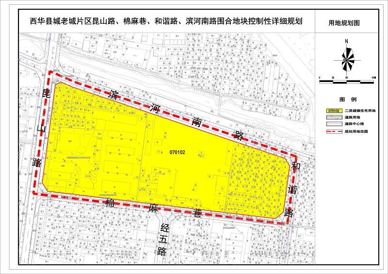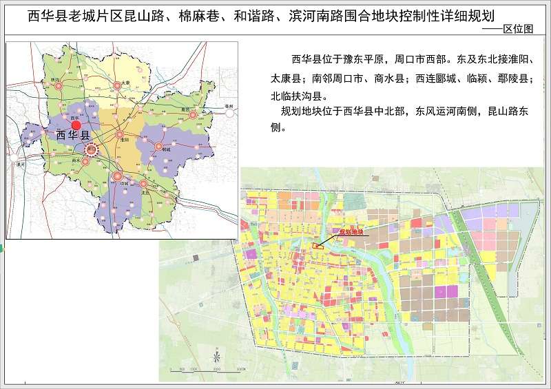 西华县城老城片区昆山路、棉麻巷、和谐路、滨河南路围合地块控制性详细规划公示