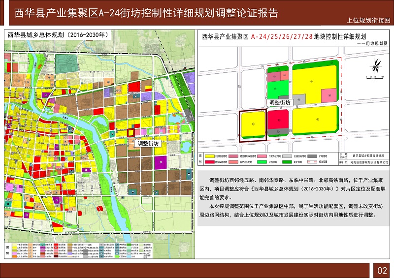 为提高规划的科学性和民主性,建立公众参与机制,根据《中华人民共和国城乡规划法》、《城市规划编制办法》和《河南省实施<中华人民共和国城乡规划法>办法》有关规定,规划报送审批前应进行公示,充分征求社会公众的意见,修改完善后报上级部门审批。现对《西华县产业集聚区A-24街坊控制性详细规划调整论证报告》进行公示。欢迎社会各界人士积极参与,提出宝贵意见和建议。