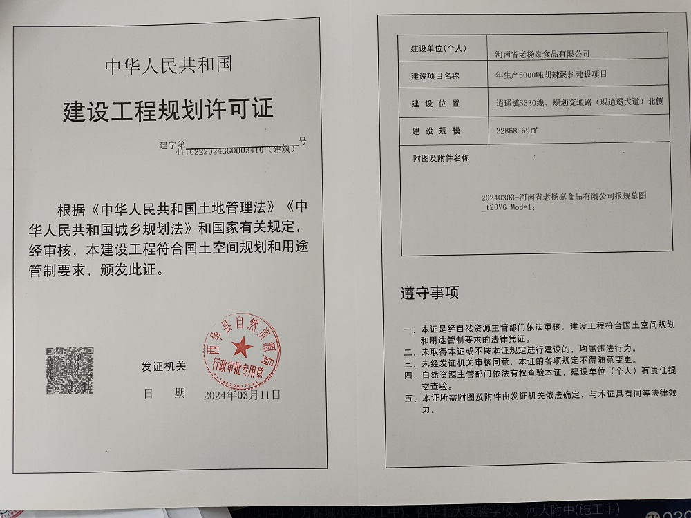 河南省老杨家食品有限公司年产5000吨胡辣汤料建设项目-批后公告