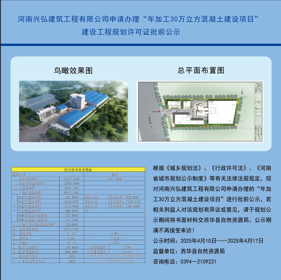 河南兴弘建筑工程有限公司申请办理“年加工30万立方混凝土建设项目”建设工程规划许可证批前公示