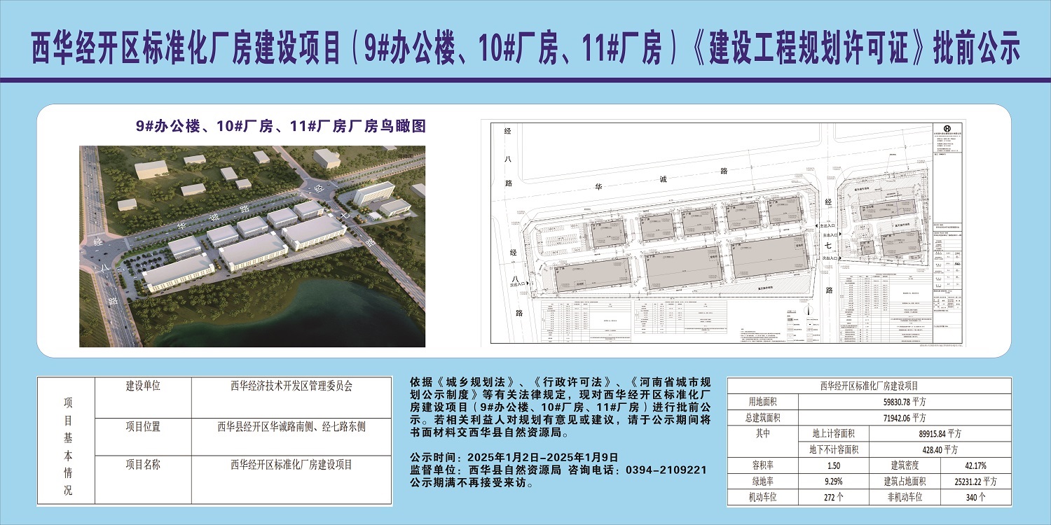 西华经开区标准化厂房建设项目(9#办公楼、10#厂房、11#厂房)《建设工程规划许可证》批前公示