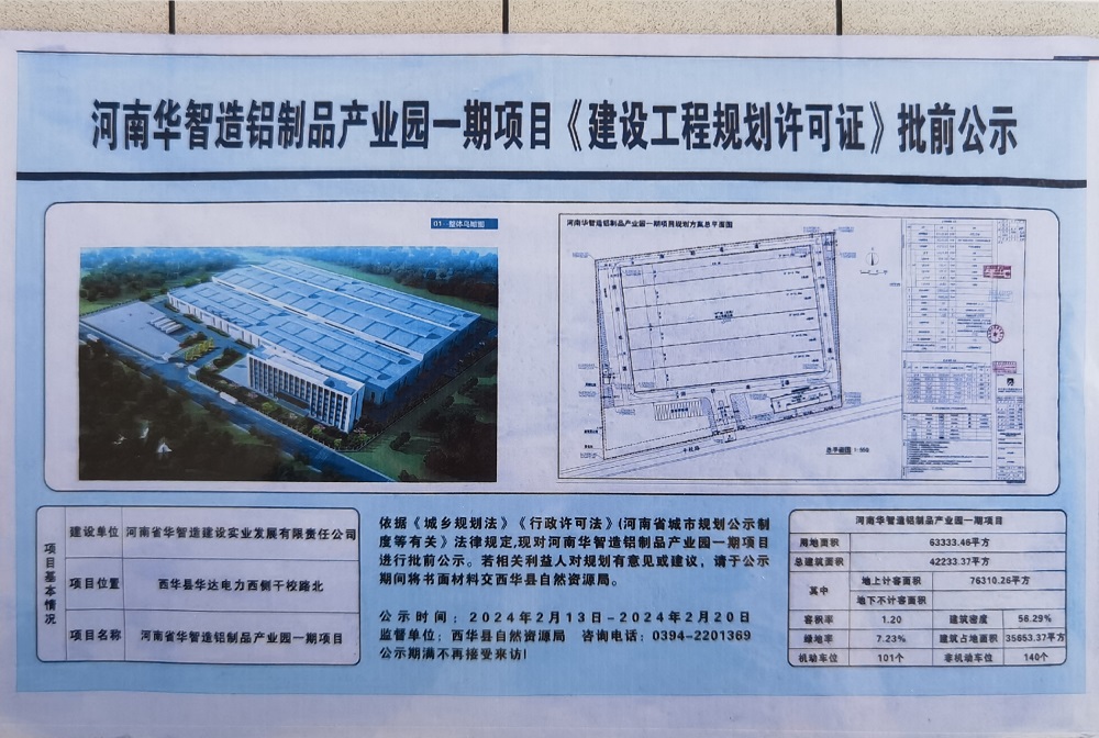 河南省华智造铝制品产业园一期建设工程规划许可证-批前公示