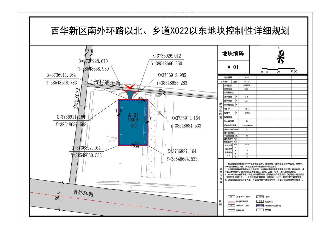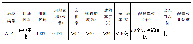 规划范围内一个地块A-01:用地性质为供电用地(1303),