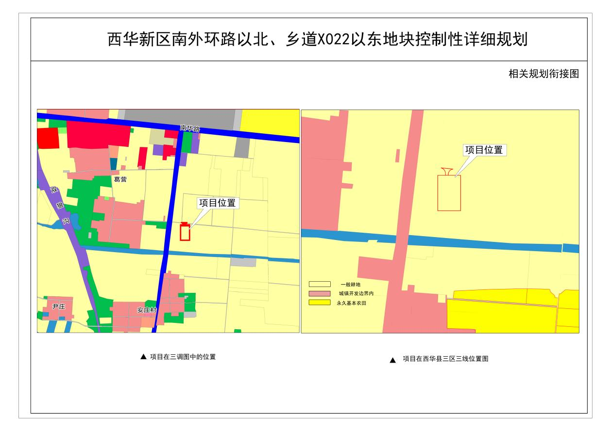 依据《西华县国土空间规划(2021-2035)》,地块南侧规划为南外环路,城市主干道,道路红线为50米,北侧为村村通道路4.0米,西侧为乡道X022,道路红线为10米。