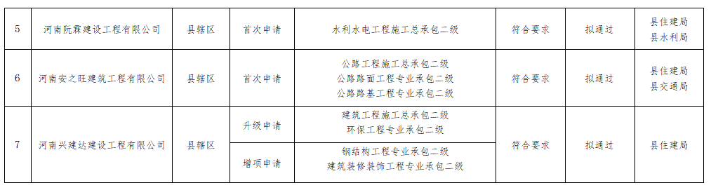 按照《行政许可法》及有关建筑业企业资质管理规定,我局对河南福满楼建筑工程有限公司等7家申请建筑业企业资质的申报材料进行了审查,现将审核意见予以公示,公示期为2023年6月6日至2023年6月19日。