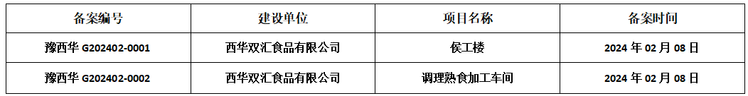 西华双汇食品有限公司年产3万吨调理熟食项目工程竣工验收备案信息统计表