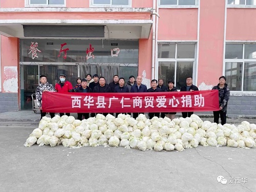 2月24日,西华县政协工商联界别组服务站向皮营街道办事处第一初级中学捐赠1万余斤大白菜,用实际行动关心关怀学校学子。县政协副主席缑长安参加捐赠仪式。