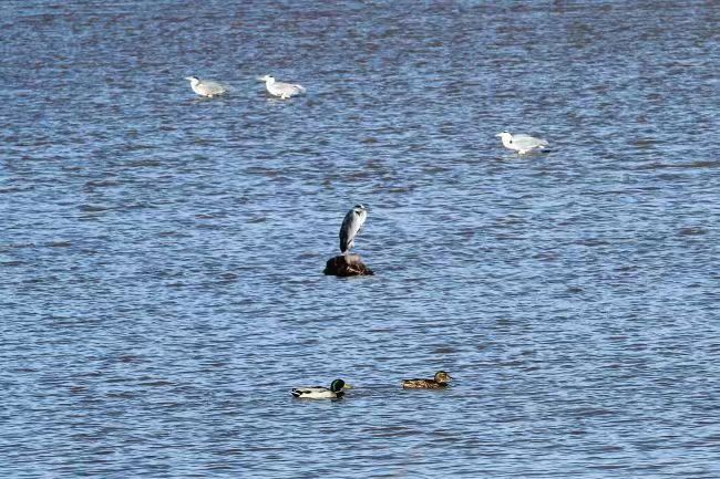 野鸭在水中游弋,寻找食物。肖海清 摄