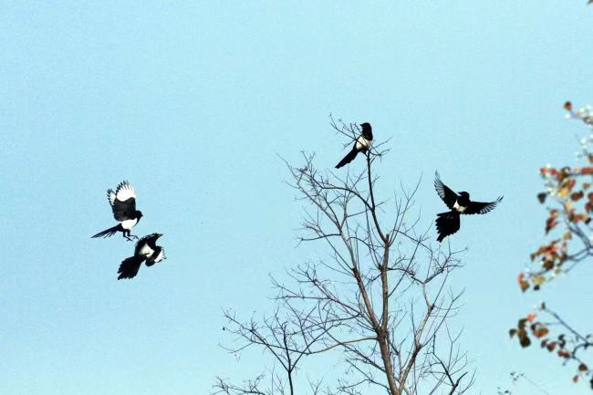 成群的鸟儿在树梢间飞舞嬉闹 肖海清 摄