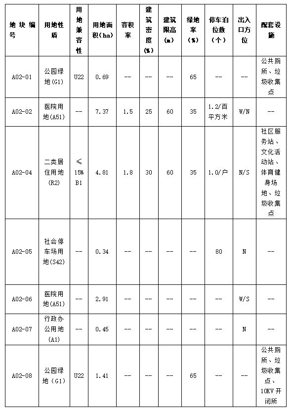 规规划A02-01、A02-08地块为公园绿地,面积分别为0.69公顷和1.41公顷,其功能引导建议以游憩为主,兼具避险功能。绿地内不得进行与其功能无关的建设活动,用地内的植被应与自身功能相符。