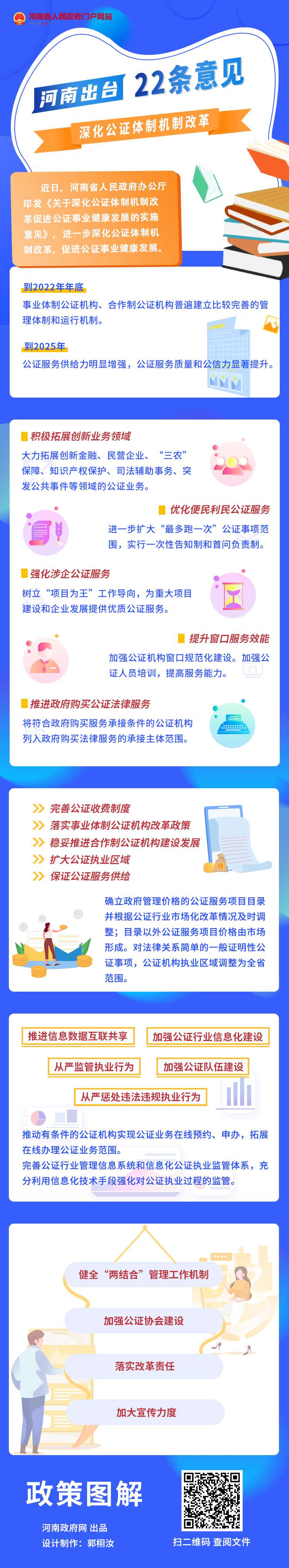 近日,河南省人民政府办公厅印发《关于深化公证体制机制改革促进公证事业健康发展的实施意见》,从积极拓展创新业务领域、优化便民利民公证服务、强化涉企公证服务等22个方面发力,进一步深化公证体制机制改革,促进公证事业健康发展。(郭栩汝)