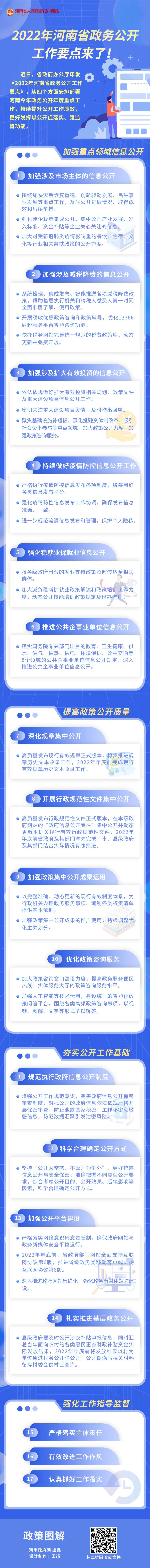 及时关切和回应“堵点”问题、持续做好疫情防控信息公开工作、优化政策咨询服务……近日,省政府办公厅印发《2022年河南省政务公开工作要点》,从加强重点领域信息公开、提高政策公开质量、夯实公开工作基础、强化工作指导监督四个方面安排部署我省今年政务公开重点工作,持续提升公开工作质效,更好发挥以公开促落实、强监管功能。