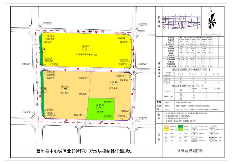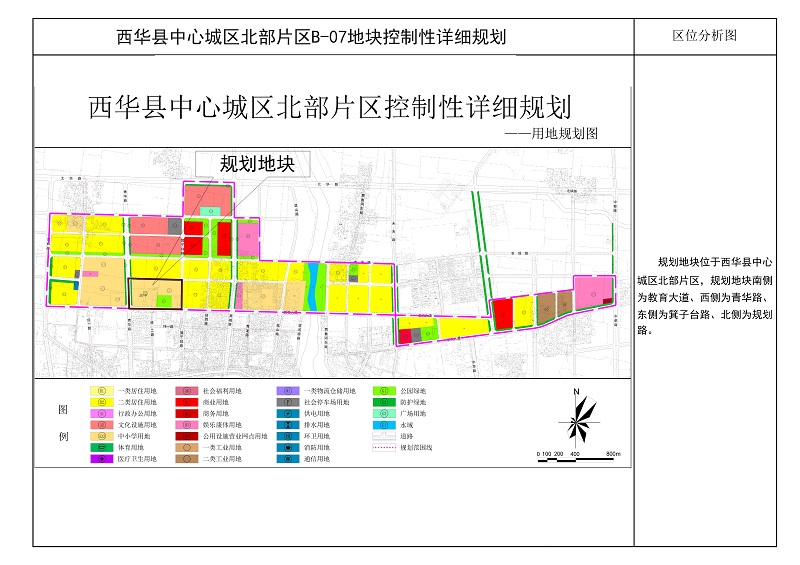 为提高规划的科学性和民主性,建立公众参与机制,根据《中华人民共和国城乡规划法》、《城市规划编制办法》和《河南省实施<中华人民共和国城乡规划法>办法》有关规定,规划报送审批前应进行公示,充分征求社会公众的意见,修改完善后报上级部门审批。现对《西华县中心城区北部片区B-07地块控制性详细规划》进行公示。欢迎社会各界人士积极参与,提出宝贵意见和建议。