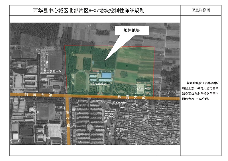 本项目位于西华县中心城区北部片区,规划路南侧、青华路东侧、教育大道北侧、箕子台路西侧,规划范围总用地面积21.6116公顷。