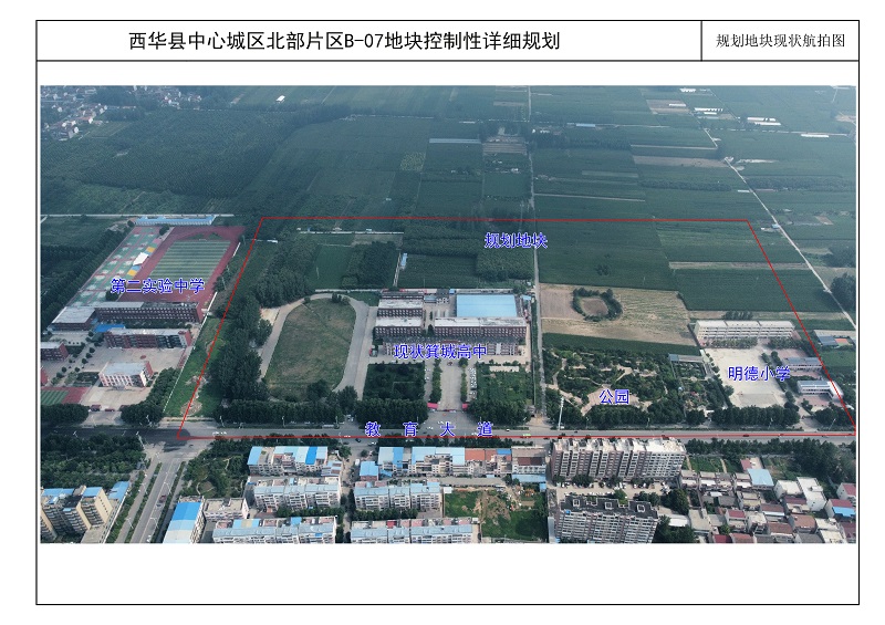 规划地块北侧为现状为耕地、地块西侧为西华县第二实验小学、地块南侧为已建住宅小区,地块东侧现状为空地。