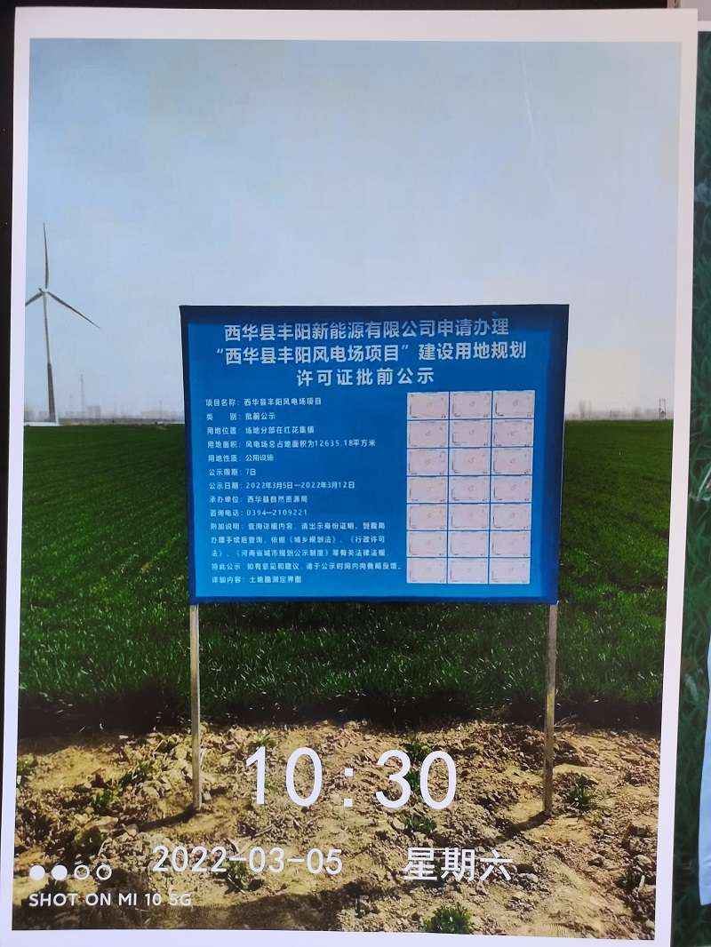 西华县丰阳新能源有限公司申请办理“西华县丰阳风电场项目”建设用地规划许可证批前公示