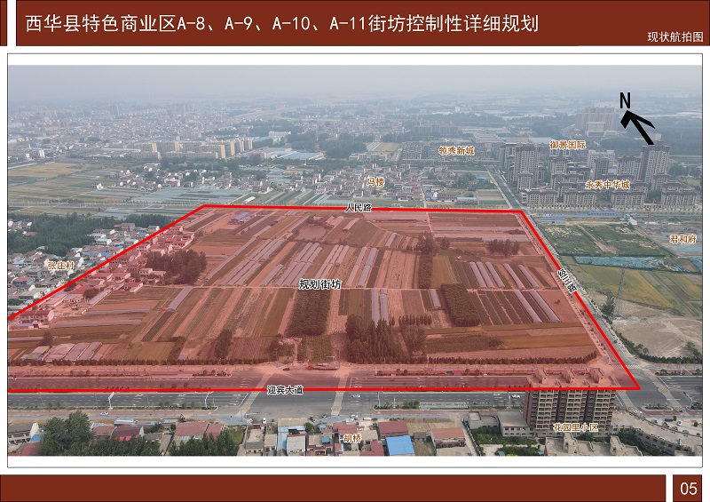 本项目规划街坊位于西华县特色商业区,西邻经二路、南邻迎宾大道、东临经三路、北邻人民路,周边商业商务职能较为完善,居住氛围浓厚,总面积26.43公顷。