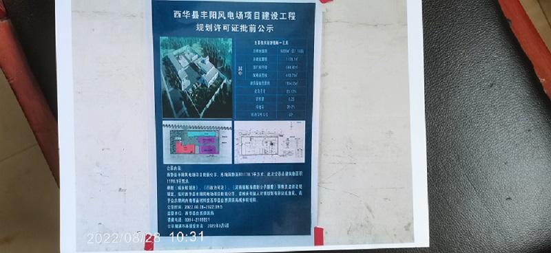 西华县丰阳风电场项目建设工程规划许可证批前公示