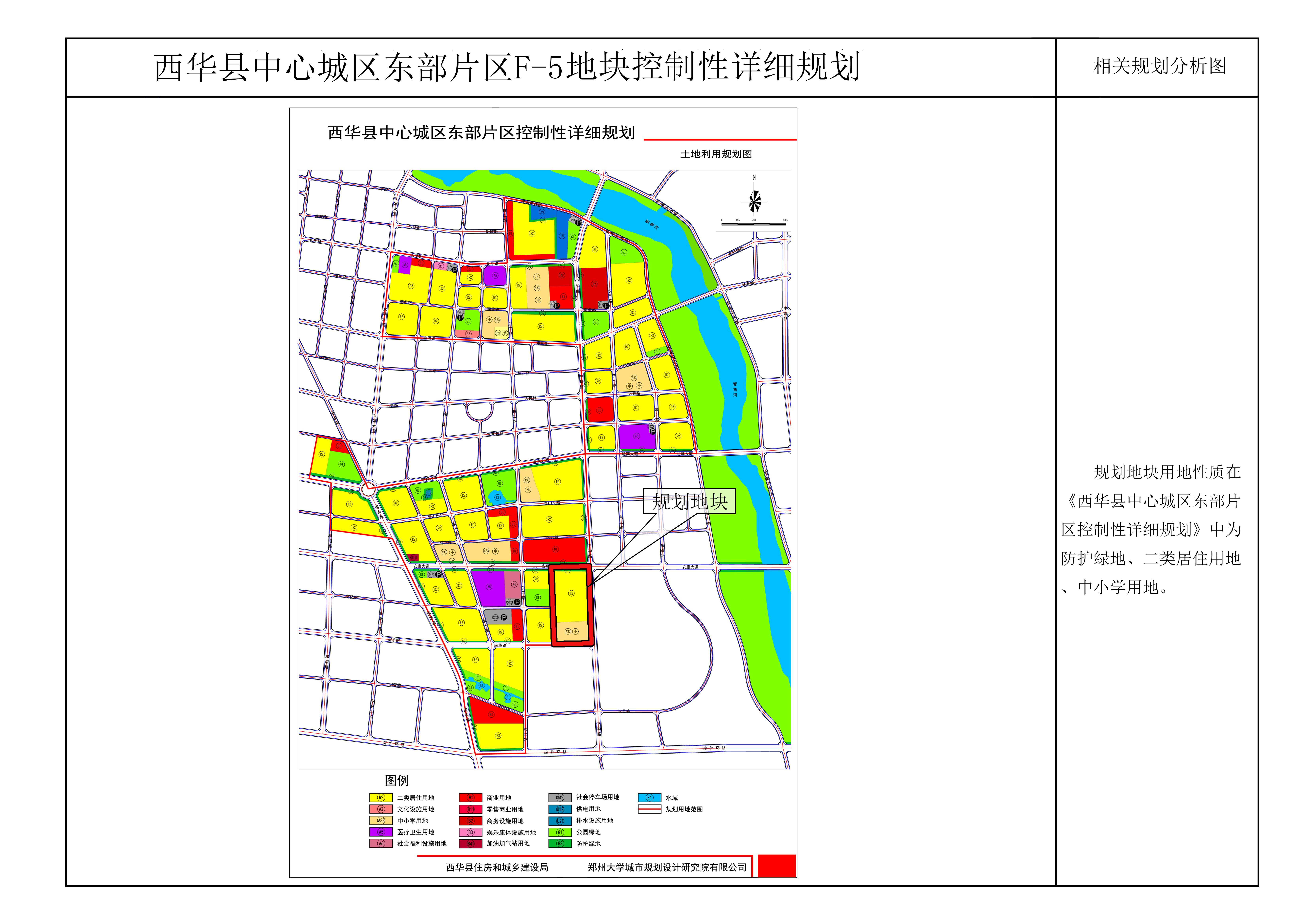 为提高规划的科学性和民主性,建立公众参与机制,根据《中华人民共和国城乡规划法》、《城市规划编制办法》和《河南省实施<中华人民共和国城乡规划法>办法》有关规定,规划报送审批前应进行公示,充分征求社会公众的意见,修改完善后报上级部门审批。现对《西华县中心城区东部片区F-5地块控制性详细规划》进行公示。欢迎社会各界人士积极参与,提出宝贵意见和建议。