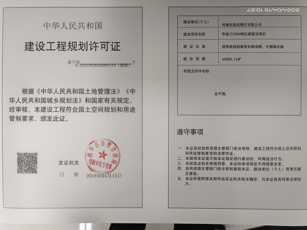 河南法斯达酒庄有限公司年加工5500吨红酒建设项目-批后公告