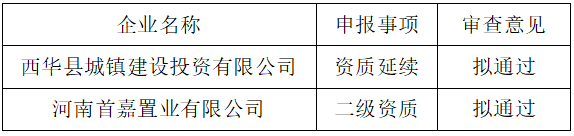 依据相关法律、法规以及《河南省住房和城乡建设厅关于房地产开发企业二级资质审批有关问题的意见》(豫建房〔2021〕253号),我局对以下公司申请二级房地产开发资质延续的申报材料进行了审查,现将审核意见予以公示,公示期为2025年12月18日至2025年12月26 日。