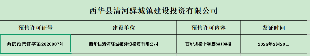 西华县清河驿城镇建设投资有限公司预售许可公示