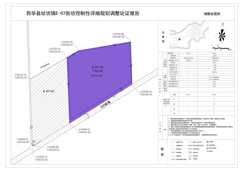 原控制性详细规划《西华县址坊镇控制性详细规划》、《西华县址坊镇E-07-02地块控制性详细规划》,已通过县政府审批,调整街坊为E-07。