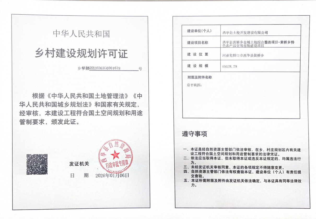 西华县黄桥乡全域土地综合整治项目-黄桥乡特色农产品交易市场建设项目批后公示