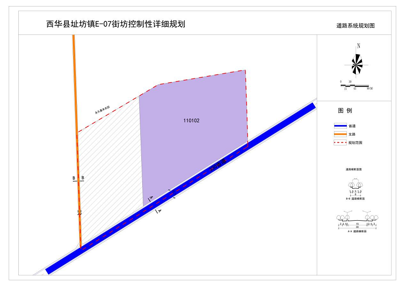 规划道路结合《西华县址坊镇国土空间总体规划(2021-2035年)》和现状建设情况,规划330省道道路红线宽度为30米,规划支路道路红线宽度为8米。