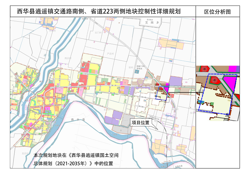 项目位于西华县逍遥镇镇区东部,交通路南侧、省道223两侧,规划范围总用地面积11.98公顷。
